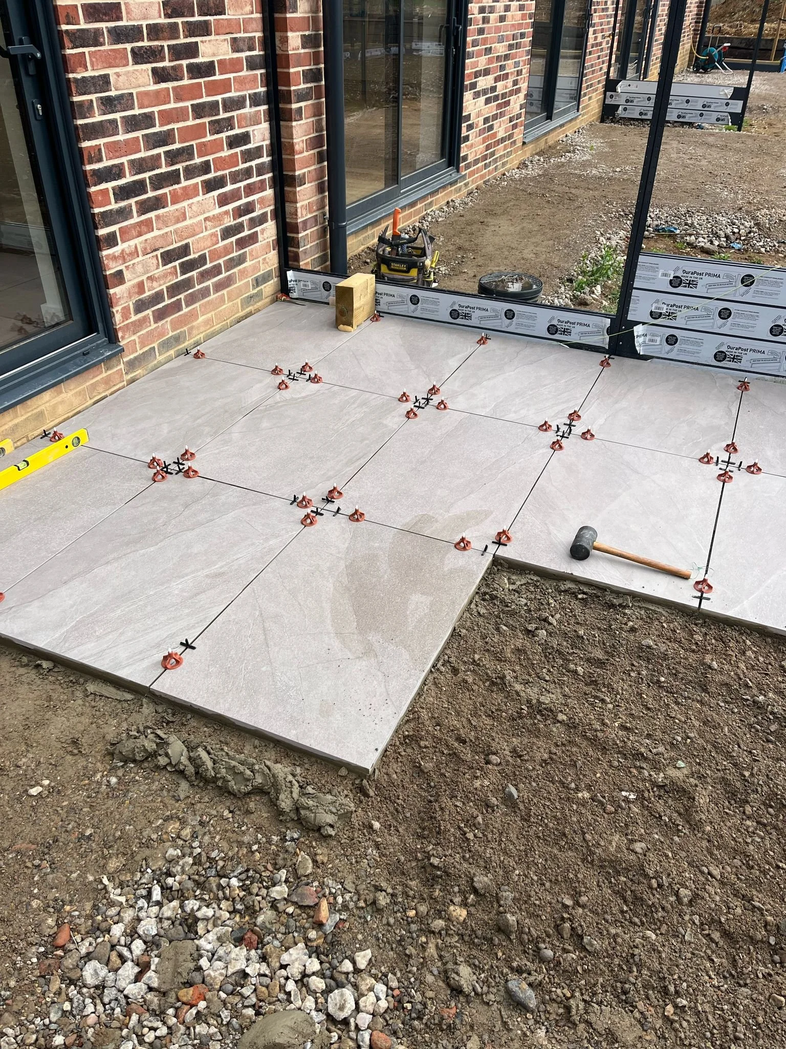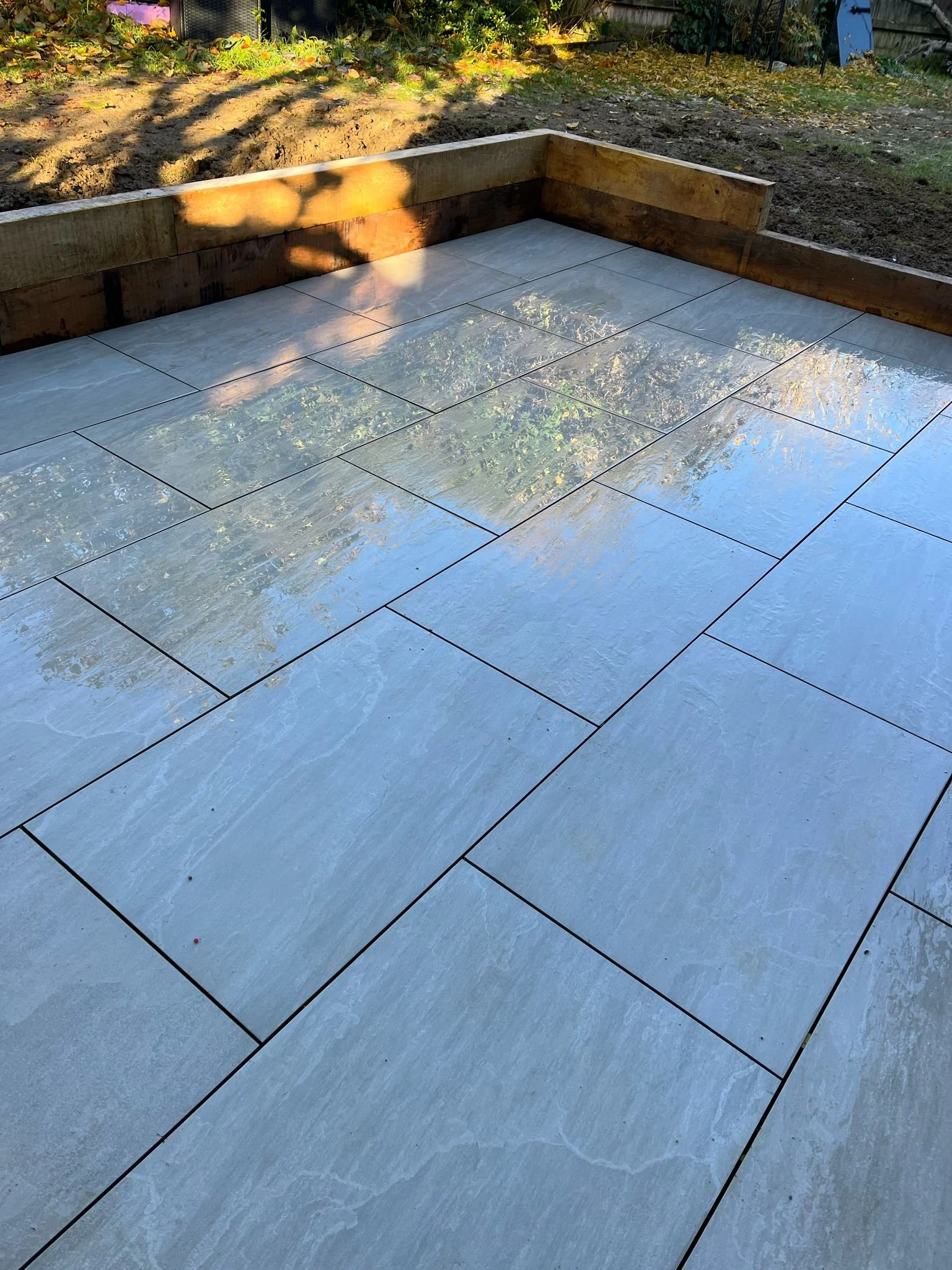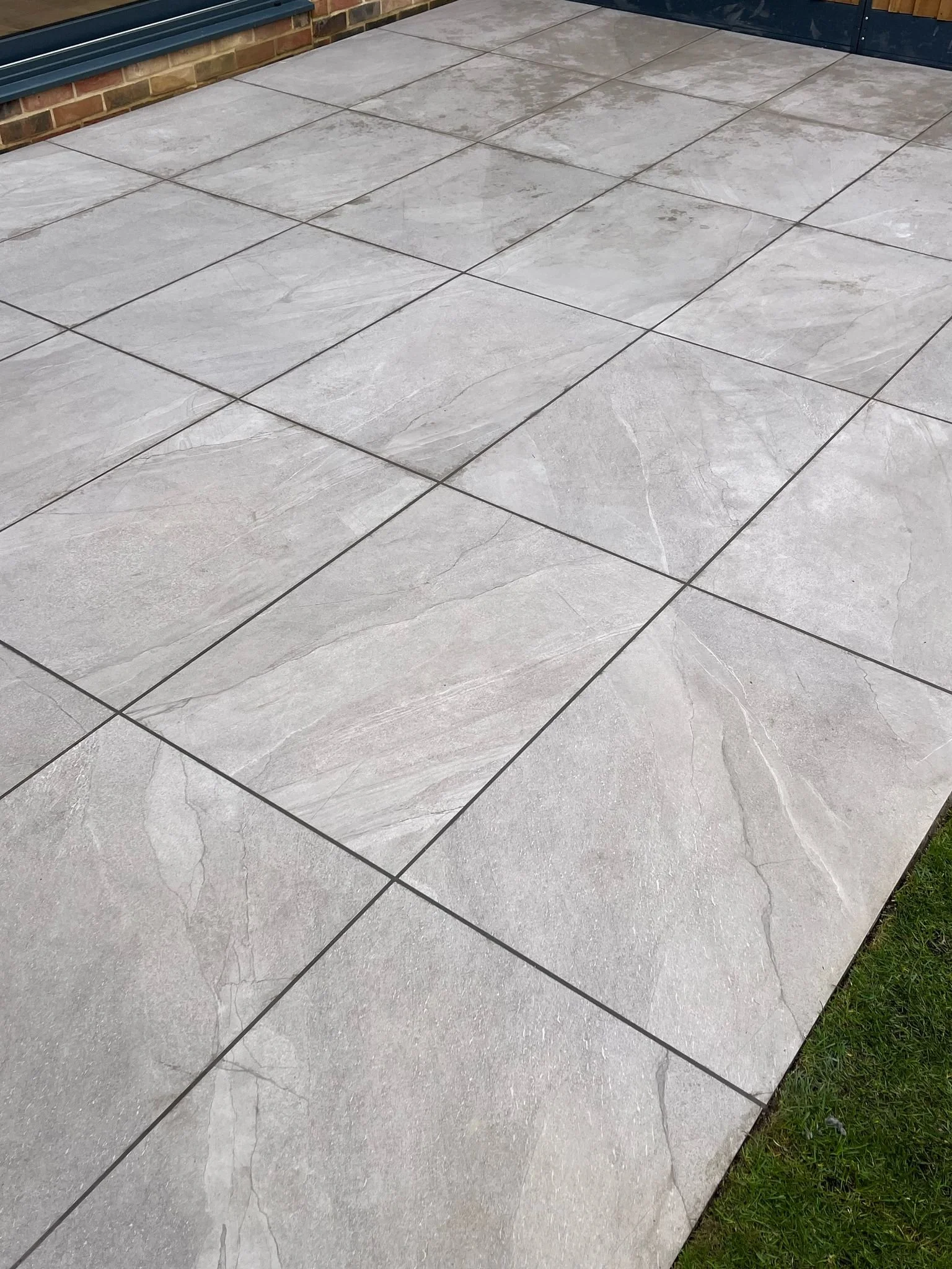 Risby, SuffolkPorcelain Patio. Achieving a clean, fresh look for your patio with ever-popular porcelain.